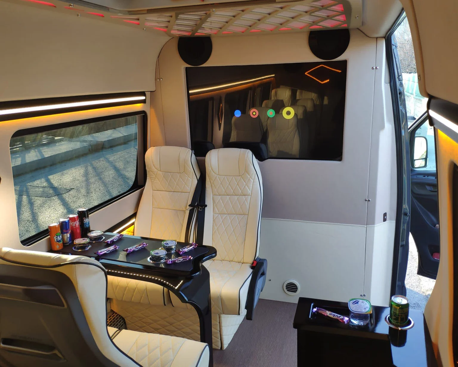 سيارة مرسيدس فان حديثة، مكيفة ومجهزة بالكامل ستكون بانتظارك.